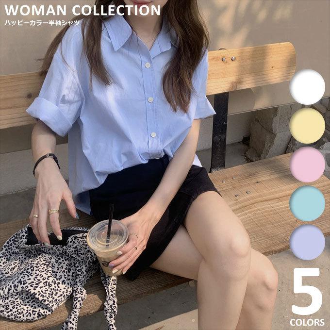 シャツ ブラウス 半袖シャツ レディース 半袖 白 襟付き おしゃれ ゆったり カジュアル きれいめ 無地 メール便送料無料 Sh 175 Woman Collection 通販 Yahoo ショッピング